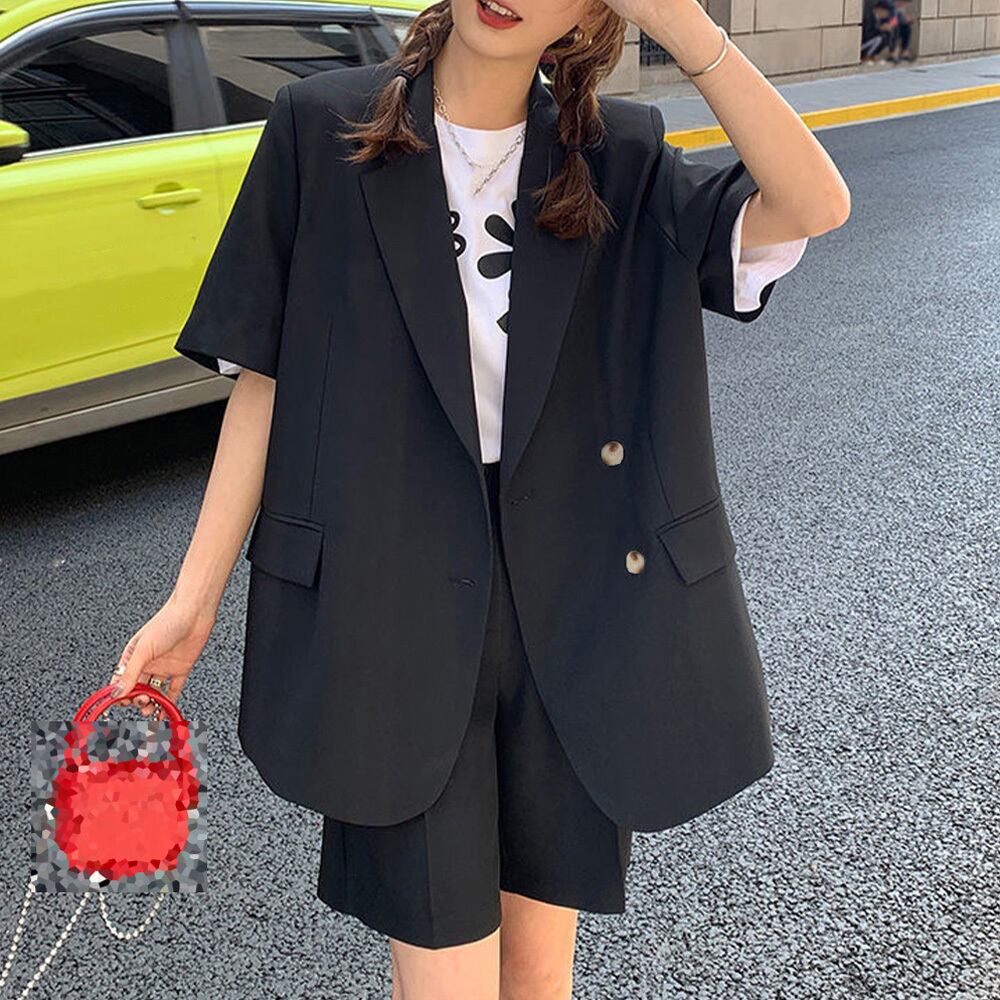 レディース 薄手テーラードジャケット 春夏ライトアウター ハーフパンツ セットアップ 韓国アンサンブル 大人カジュアル