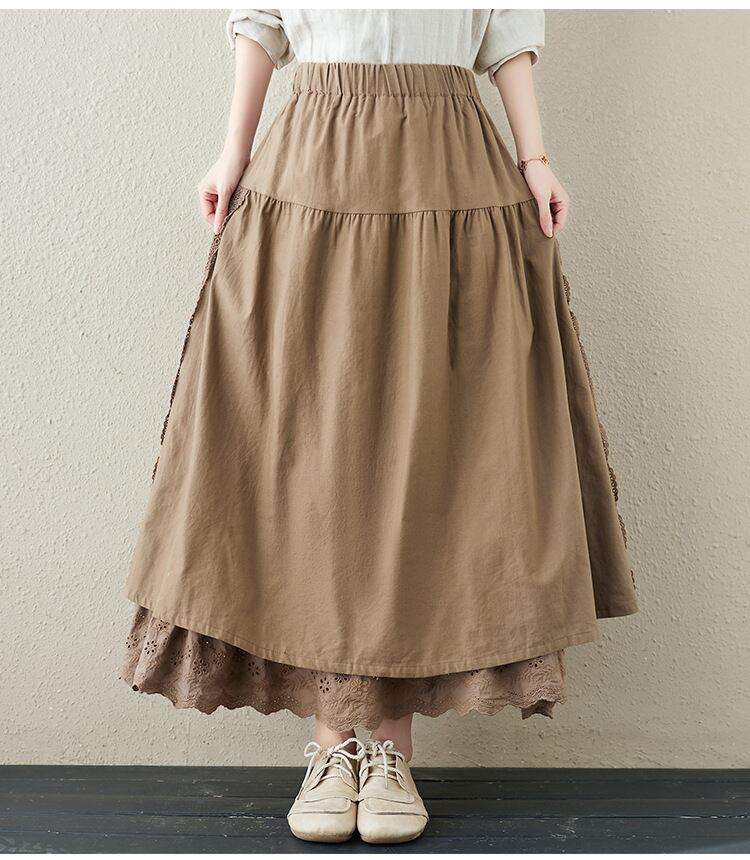 スカート レディース ロング丈スカート ボトムス ウエストゴム 体型カバー