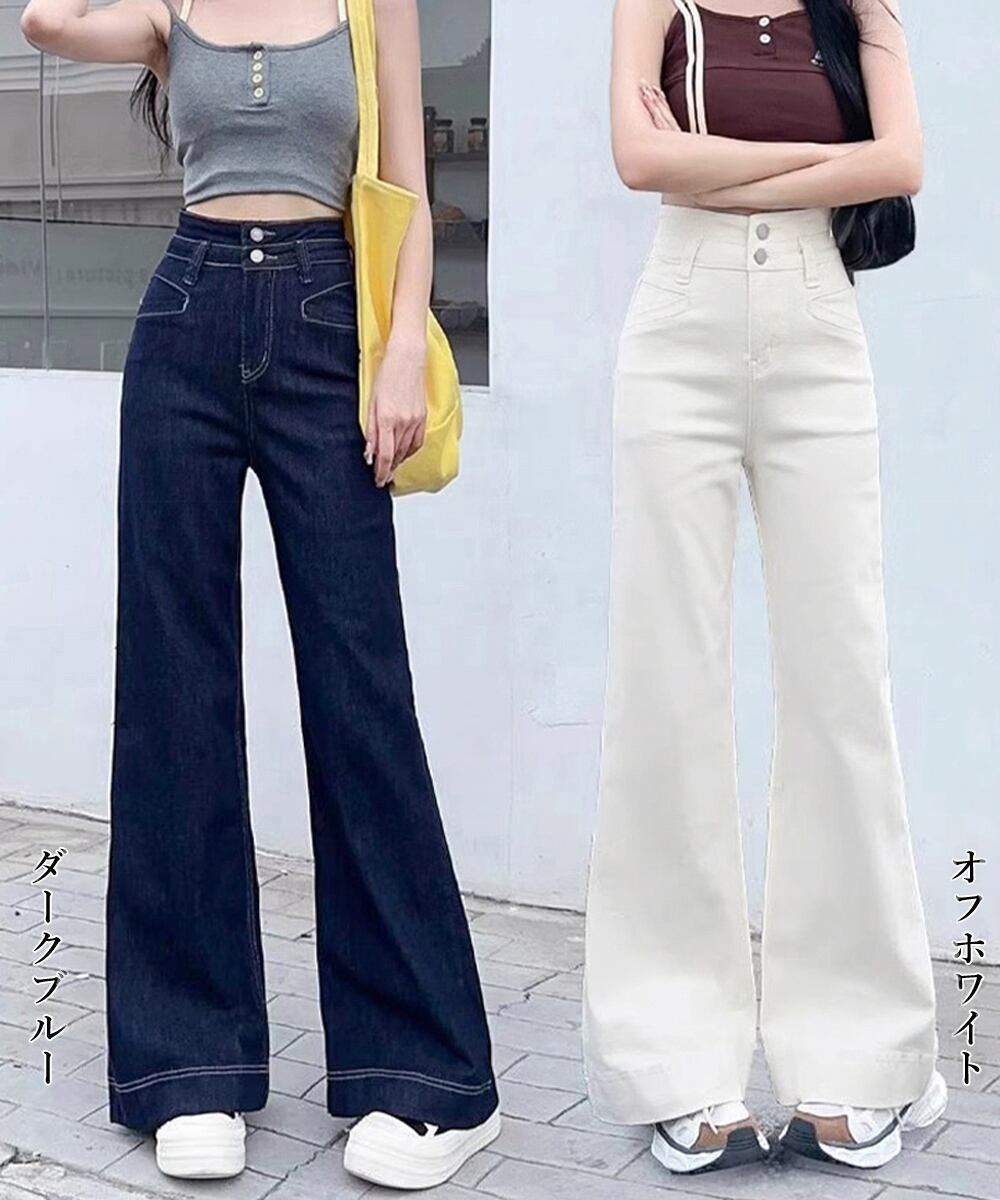 ブーツカットパンツ レディース 韓国風ジーンズ カジュアルジーパン 着やせ セミフレアパンツ ストレートデニム体型カバー
