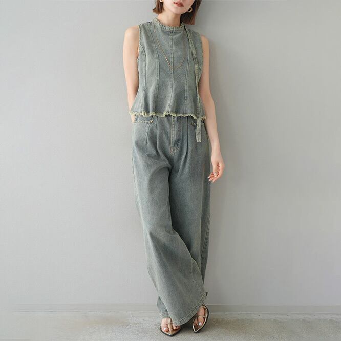 デニムトップス&ワイドレッグパンツ 2点セット デニムセット