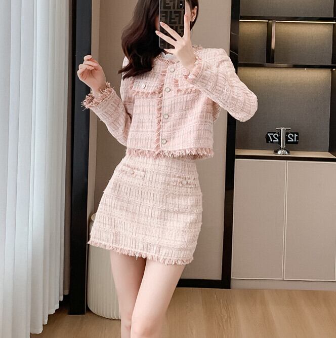 ツイード ジャケット レディス スーツ キャバ ドレス ゲスト フォーマル ミニスカート 2点セット 着痩せ